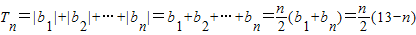 n>7时,Tn=|b1|+|b2|+…+|bn|=b1+b2+…+b7-b8-b9…bn