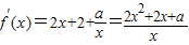 (2)因为f(x)=x2+2x+alnx(x>0),