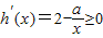 要使上式成立,只需要h(x)=2x-alnx(x≥1)是增函数即可.