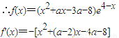 解答:解:(I)∵f'(x)=(2x+a-x2-ax-b)e4-x=-[x2+(a-2)x+b-a]e4-x