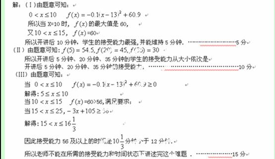 (3)若一个数学难题,需要56的接受能力以及12分钟时间,老师能否及时在学生一直达到所需接受能力的状态下讲述完这个难题?