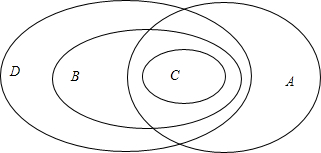 解答 解:∵集合A={x|x是面积大于5的正方形},B={x|x是面积大于9的矩形},C={x|x是面积大于10的正方形},D={x|x是面积大于7的矩形},