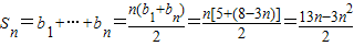 当n≥3时,bn=3n-8,Sn=b1+b2+b3+…+bn=5+2+1+…+(3n-8)=