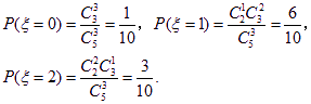 在5件产品中含有2件次品,从这5件产品中选出3件所含的次品数设为