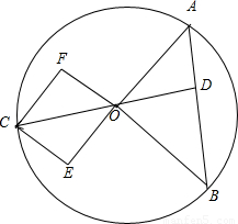 如图所示,A,B,C是圆O上的三个点,CO的延长线与线段AB交于圆内一点D,若A.0<x+y<1