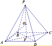 解:设AC、BD的交点为F,连接PF,则PF是四棱锥P-ABCD的高,