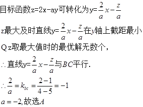 在如图所示的坐标平面的可行域(阴影部分且包括边界)内,目标函数z=2x-ay取得最大值的最优解有无数个,则a为