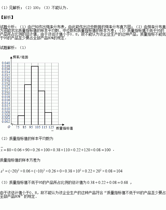 (3)根据以上抽样调查数据,能否认为该企业生产的这种产品符合“质量指标值不低于95的产品至少要占全部产品的80%”的规定?