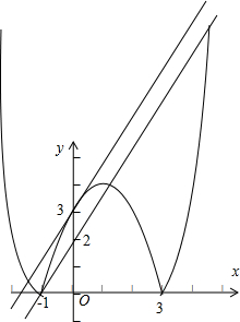 .分析:由题意可得,函数y=|x2-2x-3|与 y=2x+k 有3个或者3个以上的交点,结合图形可得常数k的取值范围.