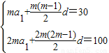 等差数列{an}的前m项和为30,前2m项和为100,则它的前3m项和为( )A.130