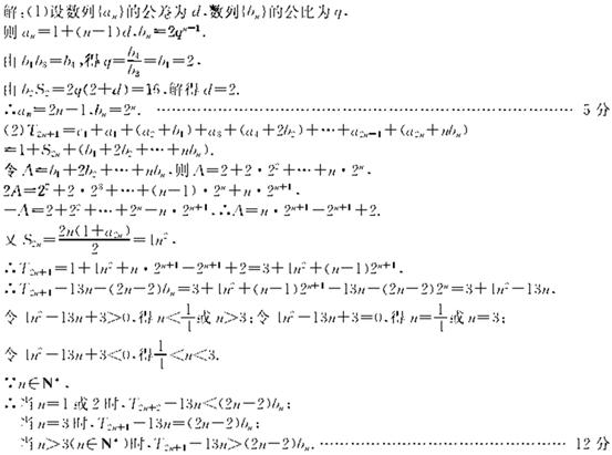 (本小题满分12分)已知数列是首项的等差数列,其前n项和为,数列是首项的等比数列,且(1)求(2)令,若数列的前n项和为,试比较的大小。