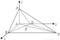 点评:本题考查的知识点是用空间向量求平面间的夹角,直线与平面垂直的判定,(I)的关键是熟练掌握空间中直线与平面垂直的判定定理,(II)的关键法一是得到∠AEP为二面角P-BD-A的平面角,法二是求出平面PBD与平面ABD的一个法向量.