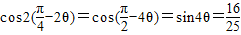 两边平方利用同角三角函数的基本关系和二倍角公式求得sin4θ的值,最后利用诱导公式,把sin4θ的值代入即可.