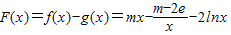 ,当m≤0时,在[1,e]上不存在一个x,使得f(x)>g(x)成立;当m>0时,