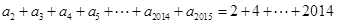 ,因此我们从上面2015个等式中寻找各项的和,可能首先想到把出现“+”的式子相加(即