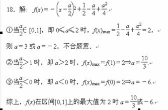 (12分) 在区间[0,1]上的最大值为2,求的值.