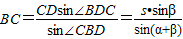 【答案】分析:先根据三角形内角和为180°得∠CBD=180°-α-β.再根据正弦定理求得BC,进而在Rt△ABC中,根据AB=BCtan∠ACB求得AB.