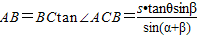 如图,测量河对岸的塔高AB时,可以选与塔底B在同一水平面内的两个测点C与D.现测得∠BCD=α,∠BDC=β,CD=s,并在点C测得塔顶A的仰角为θ,求塔高AB.
