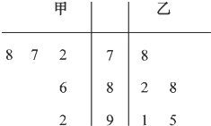 甲、乙两名同学在5次体育测试中的成绩统计如茎叶图所示,若甲、乙两人的平均成绩分别是X甲,X乙,则下列结论正确的是( )