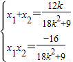 ,消去y得:(18k2+9)x2-12kx-16=0,