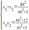 ,得(4k2+3)x2-8k2x+(4k2-12)=0,