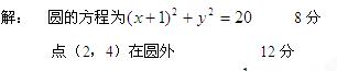 (12分)求过两点、且圆心在直线上的圆的标准方程并判断点与圆的关系.
