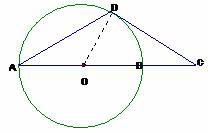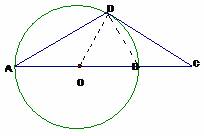 AB是圆O的直径,D为圆O上一点,过D作圆O的切线交AB延长线于点C,若DA=DC,求证:AB=2BC。