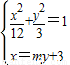 解答:解:设直线AB的方程为x=my+3,联立