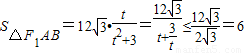 因此△F1AB的面积的最大值是6.