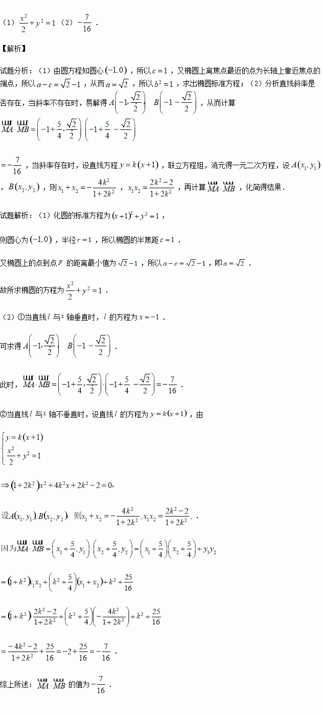 已知椭圆的左焦点为圆的圆心,且椭圆上的点到点的距离的最小值为.