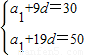 在等差数列{an}中,a10=30,a20=50.(1)求数列{an}的通项an;