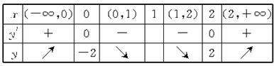 ∴函数f(x)在x=0时取到极大值-2,在x=2时取到极小值2.
