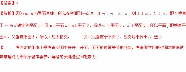 已知m,n为异面直线,m⊥平面α,n⊥平面β,直线l满足l ⊥m,l ⊥n,