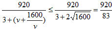 ,即v=40时上式等号成立,