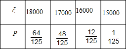 分析:(1)设随机变量η表示中奖次数,则η的所有可能取值为0,1,2,3.当η=0时,ξ=18000;当η=1时,ξ=18000-1000=17000;…依此类推,故ξ的所有可能取值为15000,16000,17000,18000;