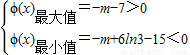 ∴m(x)最大值=m(1)=-m-7,m(x)最小值=m(3)=-m+6ln3-15.