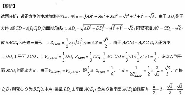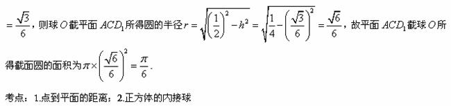 如图,已知球O是棱长为1的正方体ABCB-A1B1C1D1的内切球,则平面ACD1截球O的截面面积为( )