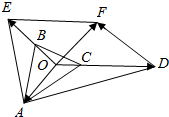 分析 作出正△ABC,并延长OC到D,使 $\overrightarrow{OD}$=4$\overrightarrow{OC}$,延长OB到E,使 $\overrightarrow{OE}$=2$\overrightarrow{OB}$.可得S△AOC=$\frac{1}{4}$S△AOD,同理S△AOB=$\frac{1}{2}$S△AOE,因为△AOE的面积与△AOD的面积都等于平行四边形OEFD面积的一半,所以S△AOC=$\frac{1}{2}$S△AOB,可得 $\frac{{S}_{△AOB}}{{S}_{△AOC}}$.