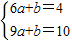 【答案】分析:根据映射的定义及条件若4和10的原象分别对应是6和9,解出a和b,然后再求解;