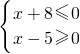 已知集合A={x|(x+8)(x-5)≤0},B={x|t+1≤x≤2t-1}.若A∩B=∅,求实数t的取值范围.