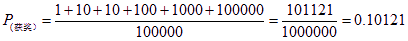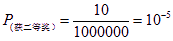 一组体育彩票等分成100万份,其中特等奖1份,一等奖是10份,二等奖是10份,三等奖100份,四等奖是1000份,五等奖是10万份,因此对于小王来说,有