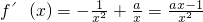 又f(x)的定义域为(0,+∞),f'(x),f(x)随x的变化情况如下表:
