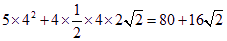 由三视图可知几何体是上下两部分组合体下部是棱长为4的正方体,上部是高为2的正4棱锥,正四棱锥的斜高等于