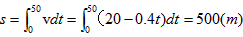 令v=0,得t=50(s),