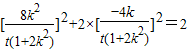,即16k2=t2(1+2k2). …(14分)