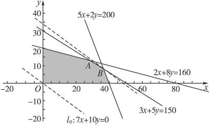 解:设甲、乙两种产品每天分别生产x吨和y吨,则每天所得的产值为z=7x+10y万元.