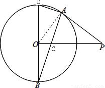 【答案】分析:(I)根据弦切角定理,可得∠PAB=∠ACB,根据圆周角定理可得∠BAC=90°,结合BC⊥OP,根据同角的余角相等及对顶角相等可得∠PDA=∠PAB,即△PAD为等腰三角形
