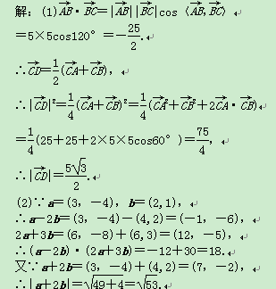 (2)若a=(3,-4),b=(2,1),求(a-2b)·(2a+3b)和|a+2b|.