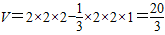 【答案】分析:根据三视图,还原成几何体,再根据长度关系,即可求得几何体的体积