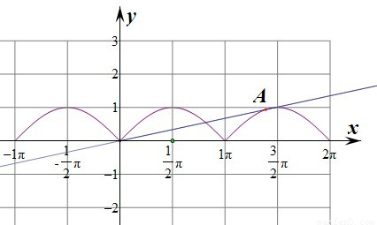 解:作出函数f(x)=|sinx|的图象与直线y=kx(k>0)的图象,如图所示,要使两个函数有且仅有三个交点,